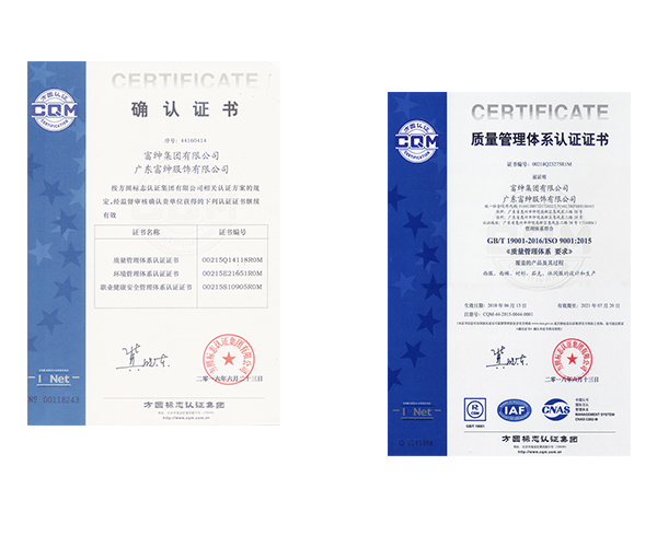 In the previous quality inspections conducted by the General Administration of Quality, the company has obtained certifications for quality management system, environmental management system, and occupational health and safety management system.