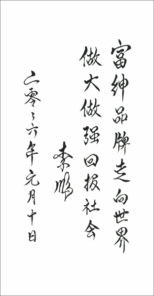 富紳在變(biàn)革求索的征途中薪火相傳(chuán),堅持在創新中發展,以品牌男裝爲先導,向多元化領域延伸,布局未來,謀略百年!